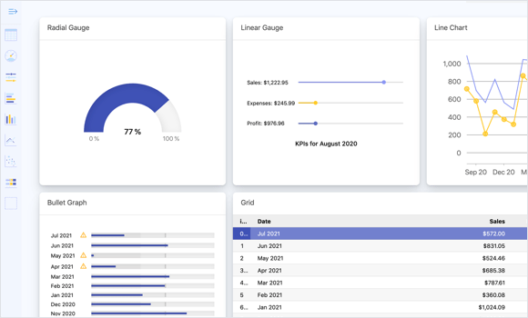 ユーザーがカスタマイズ可能な動的ダッシュボードです。