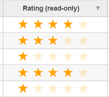 makeRatingメソッドは、列バインディングから現在のレーティングを取得します。セルに表示する星の数を定義する範囲と、セルの「arial-label」属性に適用されるラベル式を設定できます。